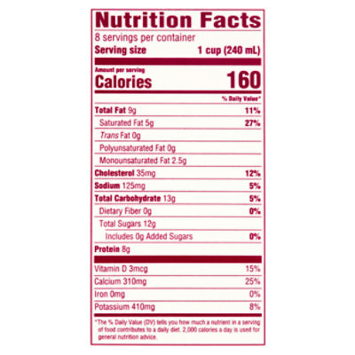 Vitamin A 90mcg 10. An 8-ounce serving of milk contains about 8 grams of fat and 150. Get nutrition ingredient allergen pricing and weekly sale information.